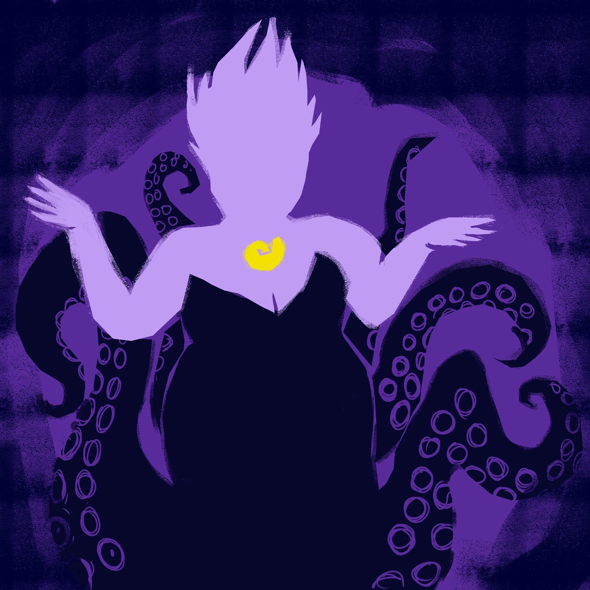 Drew a picture of my favourite Disney villain, Ursula the sea witch. I was originally going to draw her more detailed but I liked the more simple shapes and colours that I ended up with. I’m particularly pleased with her tentacles actually, I also added a texture brush to give a screen print effect. Drawn in Photoshop.