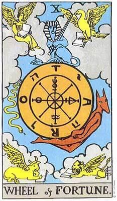 The next card featured in the spotlight is the tenth card in the major arcana, The Wheel of Fortune.